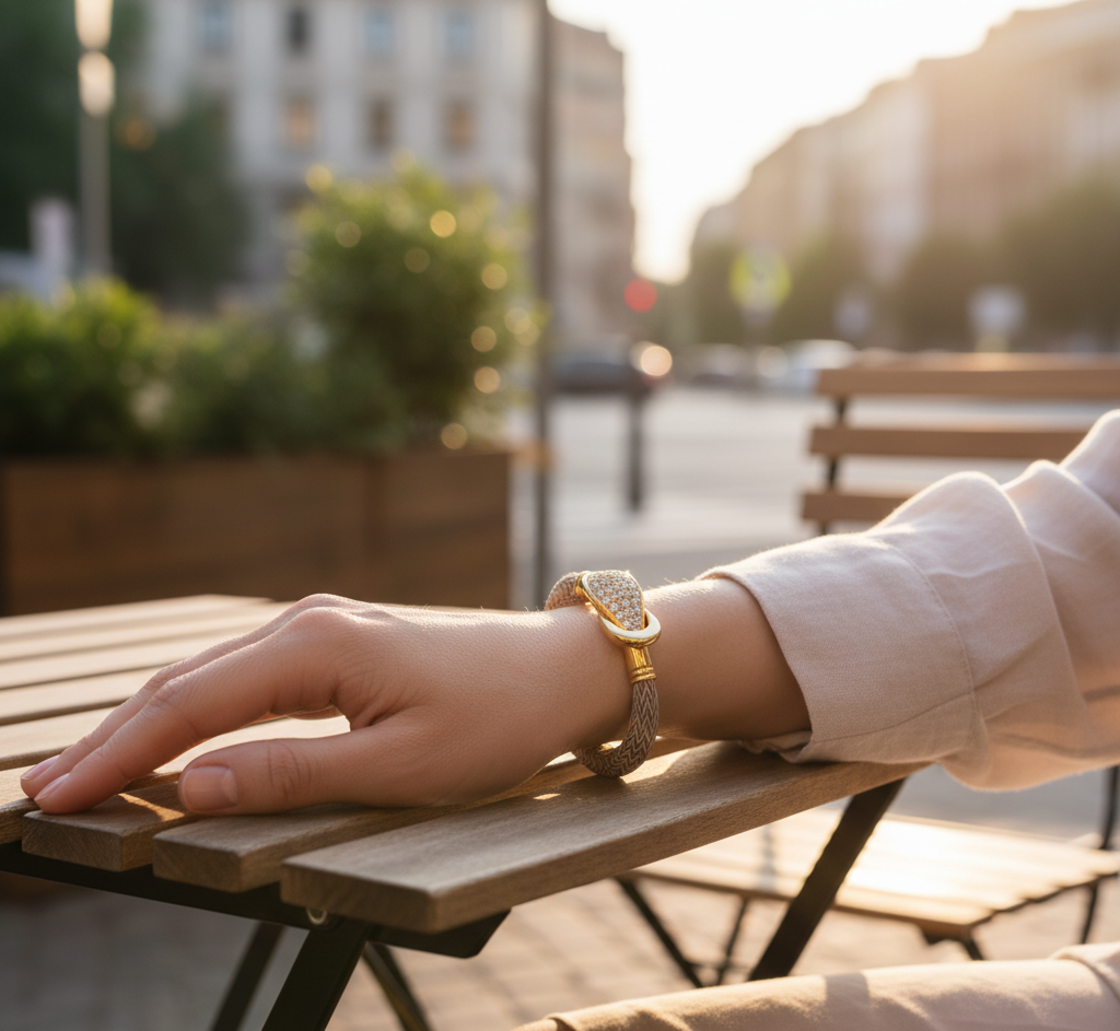 ぴったりなサイズを選んで頂く為に、まずはご自身の手首の周りをメジャーなどで計って頂くと、目安になりおすすめです。